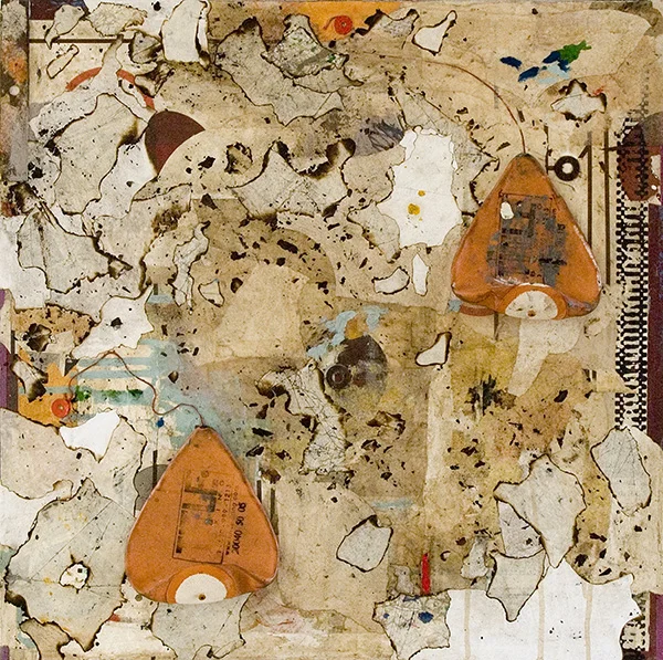 acrylic, collage, found object, cassette tape,