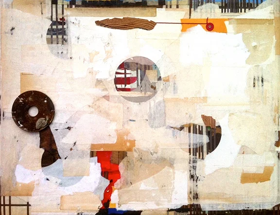 acrylic, collage, ink, tea and oil on canvas